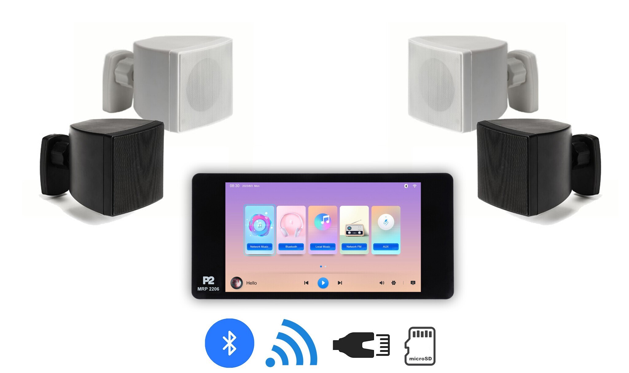 MRP 2206 to kompaktowy odtwarzacz ze wzmacniaczem do montażu w ścianie. Posiada wbudowany wzmacniacz stereo klasy D o mocy 2 x 20W wraz z odtwarzaczem MP3 obejmującym karty microSD, łączność Bluetooth. Uzupełnieniem jest wejście AUX do dodatkowych źródeł sygnału, wyjście na subwoofer aktywny. Niezwykle istotną funkcją MRP 2206 jest praca w sieci WiFi/LAN.