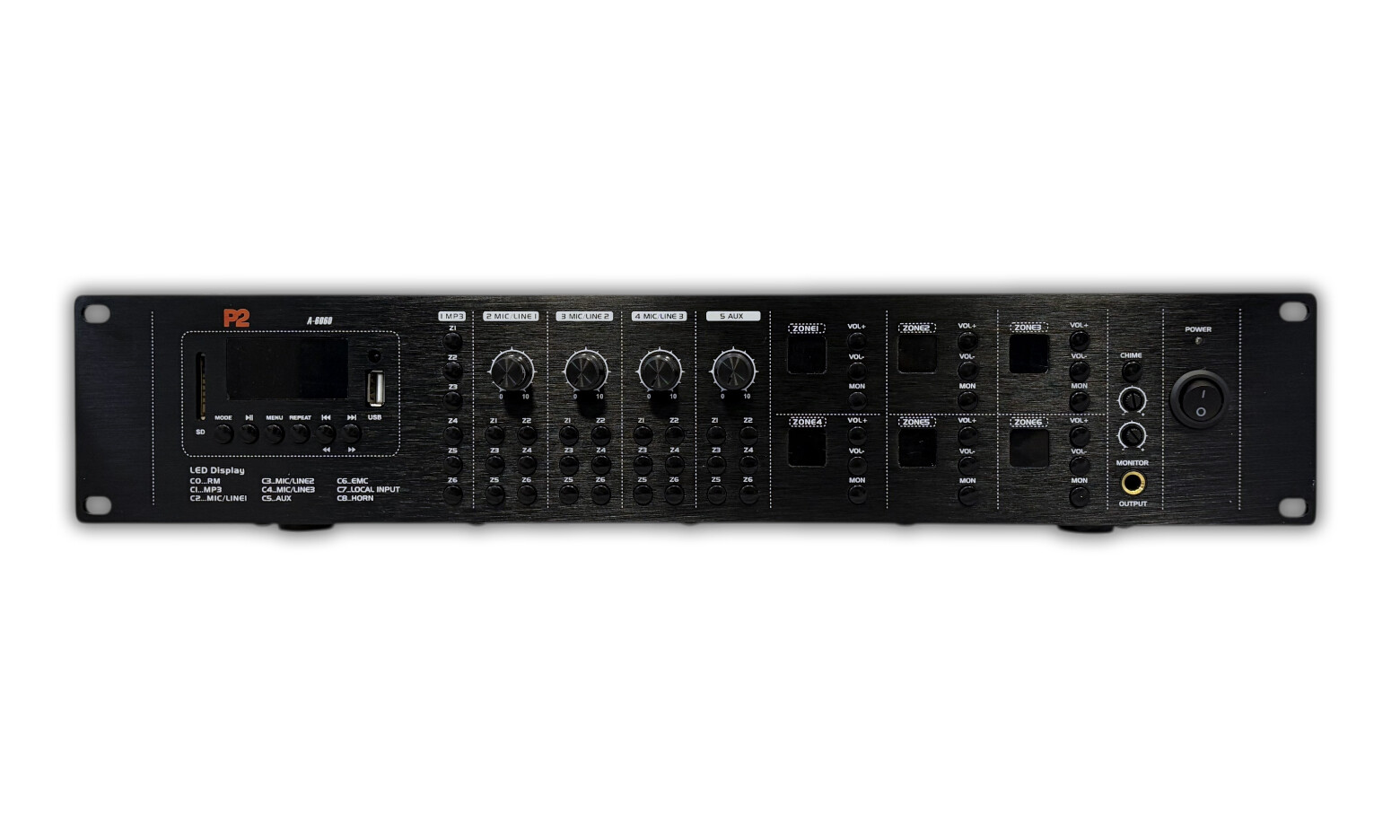 A-6060M może być sterowany za pomocą lokalnych kontrolerów ściennych CP-6 i mikrofonów strefowych ZM-6, które są instalowane bezpośrednio w strefach. Dzięki temu, np. przy nagłośnieniu hotelu, nagłośnieniem strefy SPA można zarządzać z lokalnego panelu CP-6 umieszczonego w tej strefie, a nie z miejsca, gdzie znajduje się jednostka centralna.