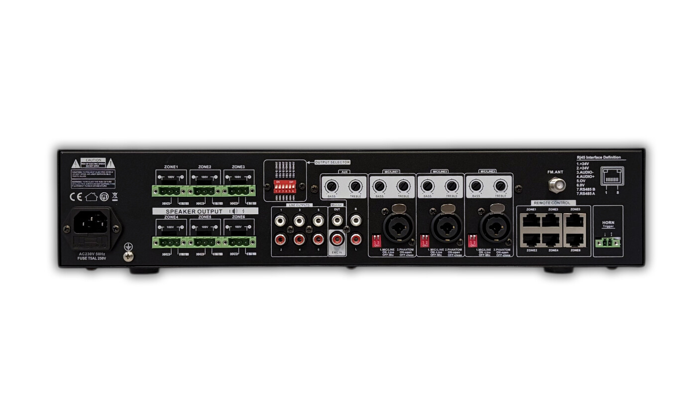 Wzmacniacz A-6060M posiada wbudowaną matrycę, która umożliwia nadawanie innego sygnału w każdej z sześciu stref wyjściowych. Takie rozwiązanie sprawdzi się we wszystkich dużych obiektach, gdzie należy zadbać o nagłośnienie wielu stref, z czego każda ma inne 'zapotrzebowanie' na muzykę, np. hotele, pensjonaty, obiekty spa, restauracje, duże markety etc.